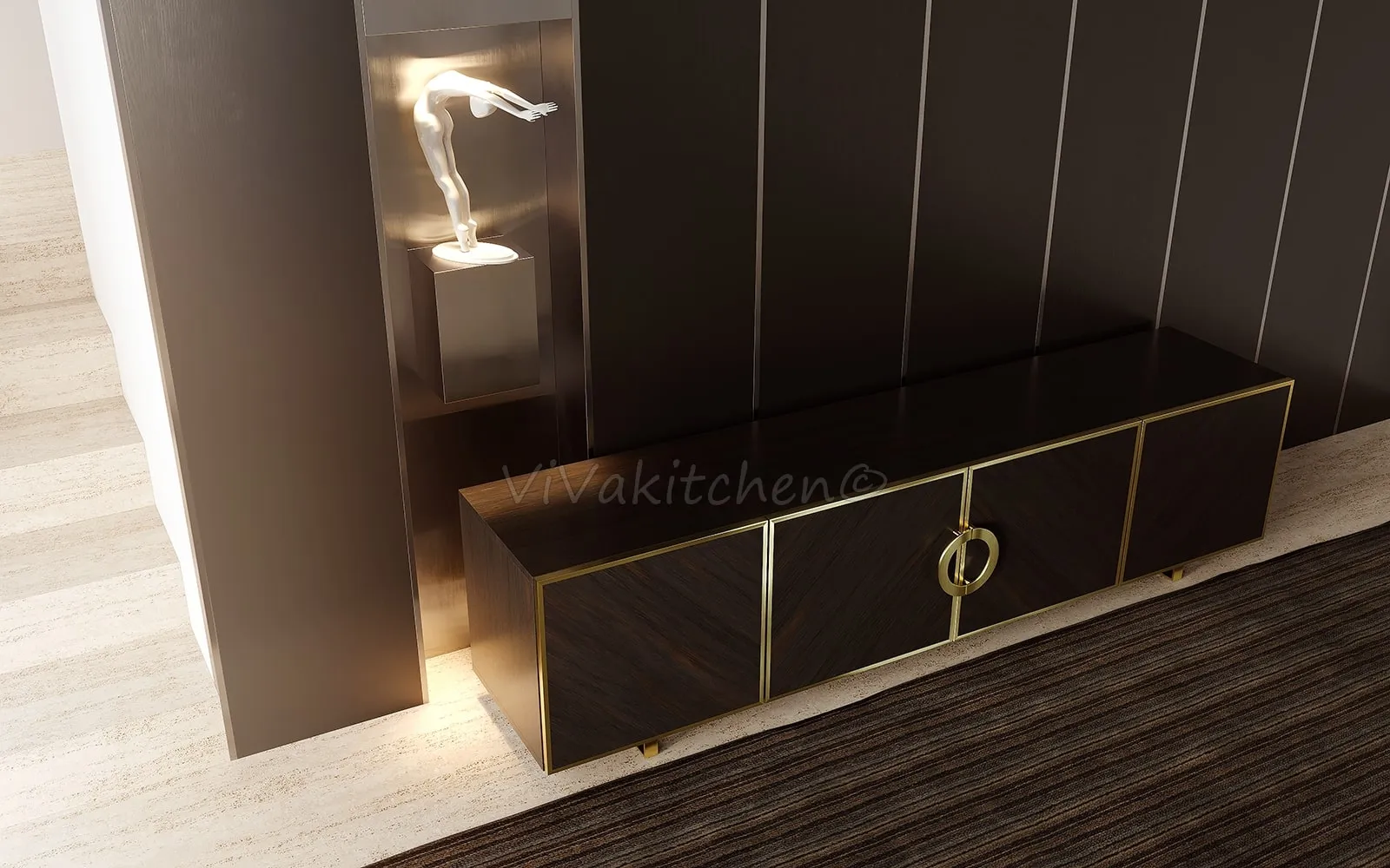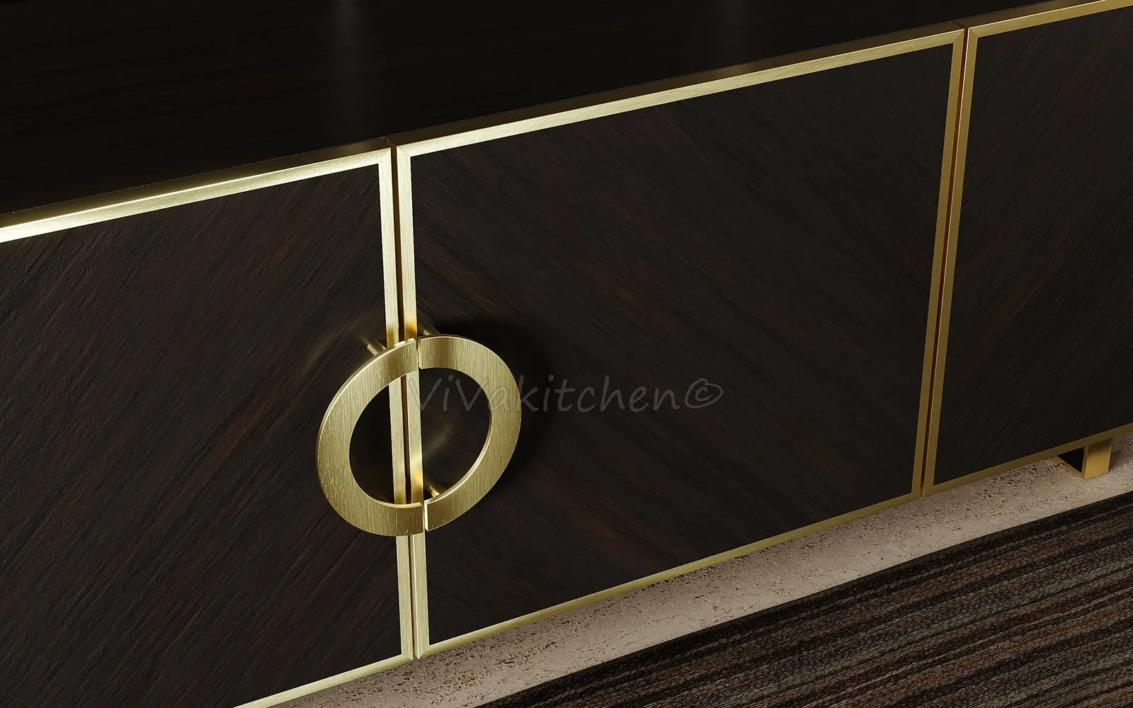 Дизайнерские латунные ручки не только удобны в использовании, но и подчеркивают эксклюзивность этого предмета мебели.