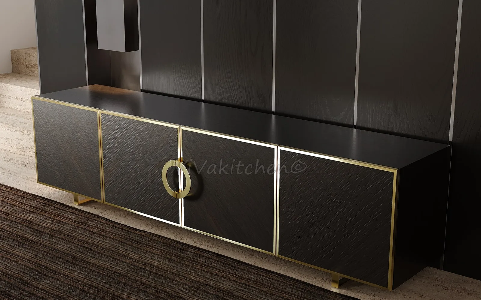 Этот элегантный комод станет идеальным акцентом для вашего интерьера благодаря изысканным материалам и дизайнерским решениям. Выполненный из шпона с диагональной раскладкой, он придает мебели уникальный текстурный эффект, создавая стильную и современную атмосферу. Обрамление фасадов из натуральной латуни добавляет роскоши и подчеркивает внимание к деталям.